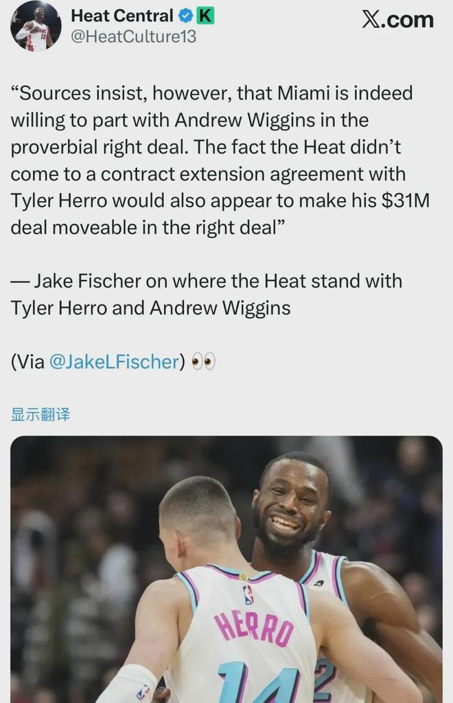 当然,湖人也会注意到自身的防守问题,所以正密切关注着著名攻防一体侧翼,又曾在22年以核心前锋身份帮助勇士夺冠的维金斯。好消息是,近日美记Fischer透露,热火确实愿意在合适的交易中送走维金斯。